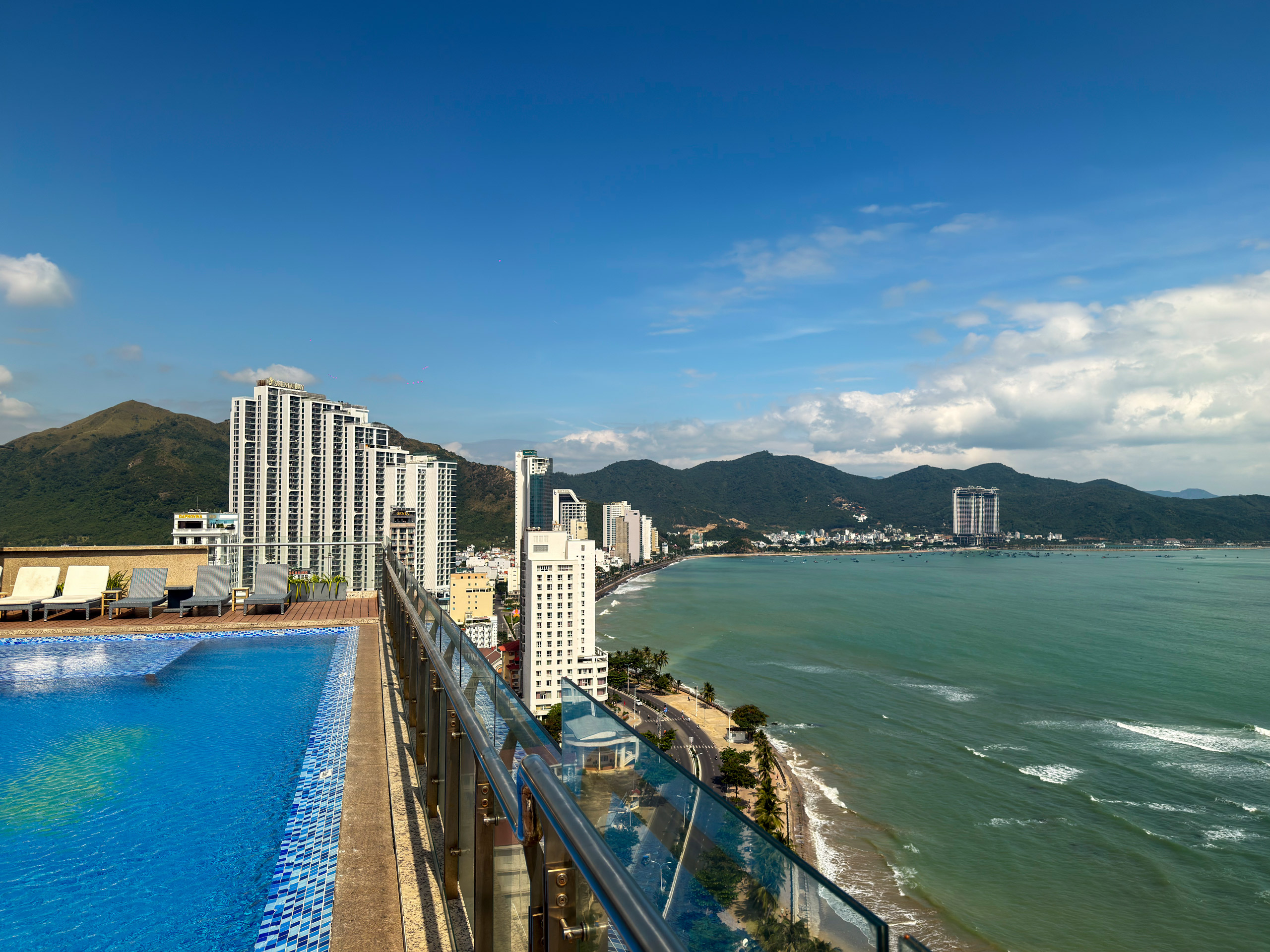 Diese Vietnam Reise ist eine Reise der großen Kontraste. So auch besonders, wenn wir unser nächstes Ziel, die Stadt Nha Trang erreichen. Dieses Foto hier entstand auf dem Dach von unserem Hotel. Hier werden wir nicht nur den neu entstandenen Touristen-Komfort genießen, sondern auch in alte Geheimtipps eintauchen.
