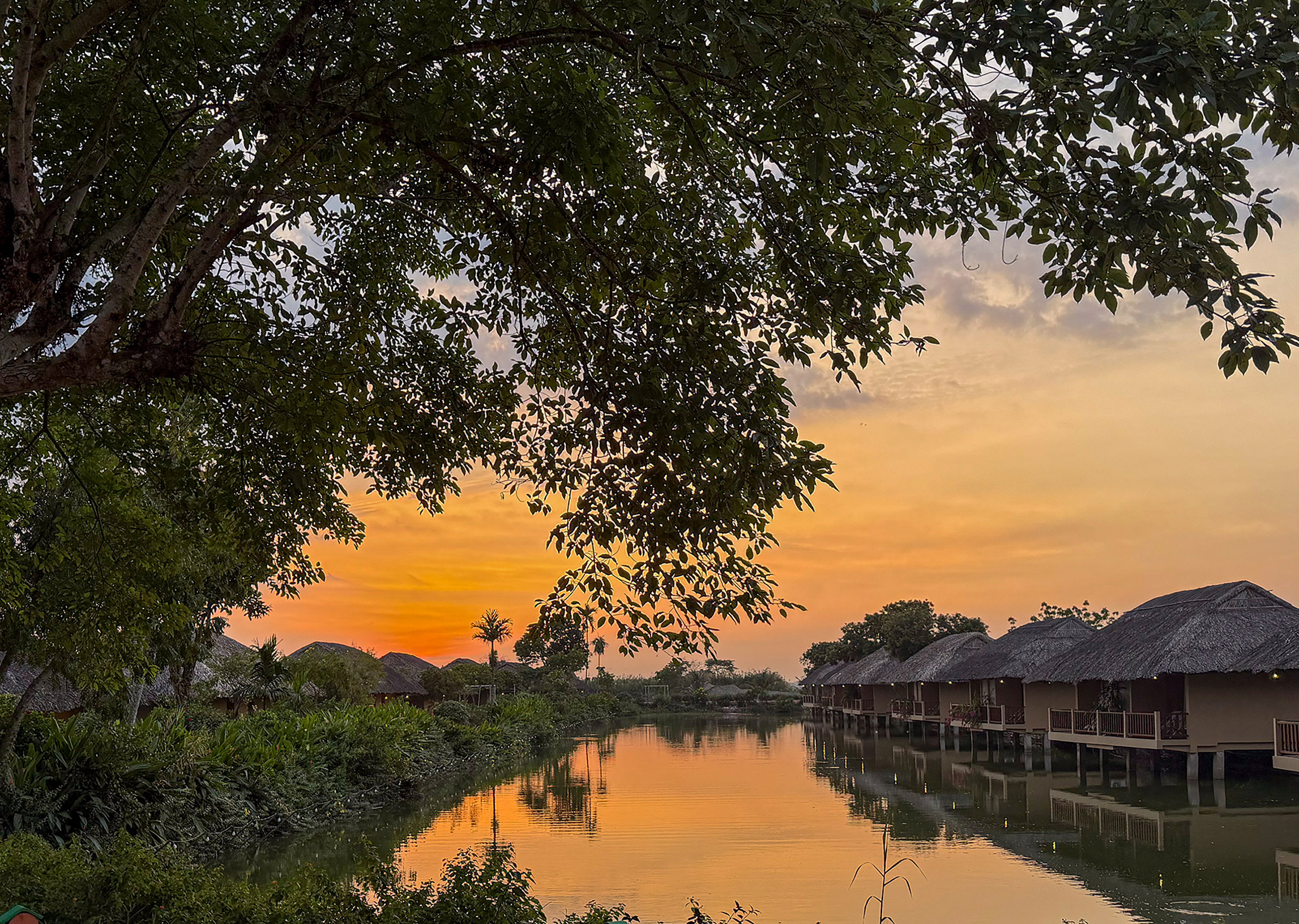 Angekommen im Mekong-Delta in unserer Bungalow-Anlage auf einer großen Flussinsel. Diese Anlage allein mit ihrem großen Garten und eigenem See ist für sich schon wunderschön. Direkt dahinter gibt es aber auch noch ein Dorf, in das man selbständig ausschwärmen kann. Auch Fahrräder stehen zur Verfügung. Auf dem Fluss tuckern vom zeitigen Morgen bis zur Abendsonne die kleinen und großen Boote vorbei.