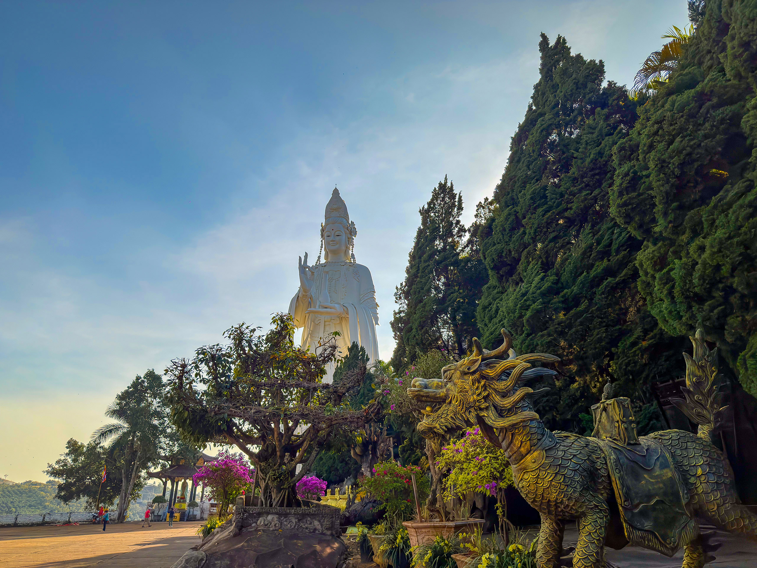 Auf unserem Weg durch das Zentrale Hochland nach Dalat kommen wir an der Tempelanlage von Linh An Tu vorbei. Hier befindet sich eine der größten Lady Buddha Statuen von Vietnam. Sehr eindrucksvoll die ganze Anlage, die von der 75 Meter hohen Lady Buddha Statue überragt wird. Aber auch spürbar, welche Bedeutung Quan Âm für die meisten Vietnamesen hat.