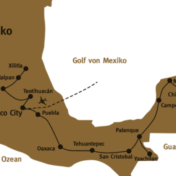 Ankunft in Mexico City, Rückflug ab Cancún. Dazwischen eine unglaubliche Vielfalt, so bunt wie eine mexikanische Fiesta. Kultur, Natur, koloniale Städte, historische Anlagen, Pyramiden, Künstler, indigene Völker, Berge, Vulkane, tropische Urwälder, Wasserfälle, Karibik-Strände ...