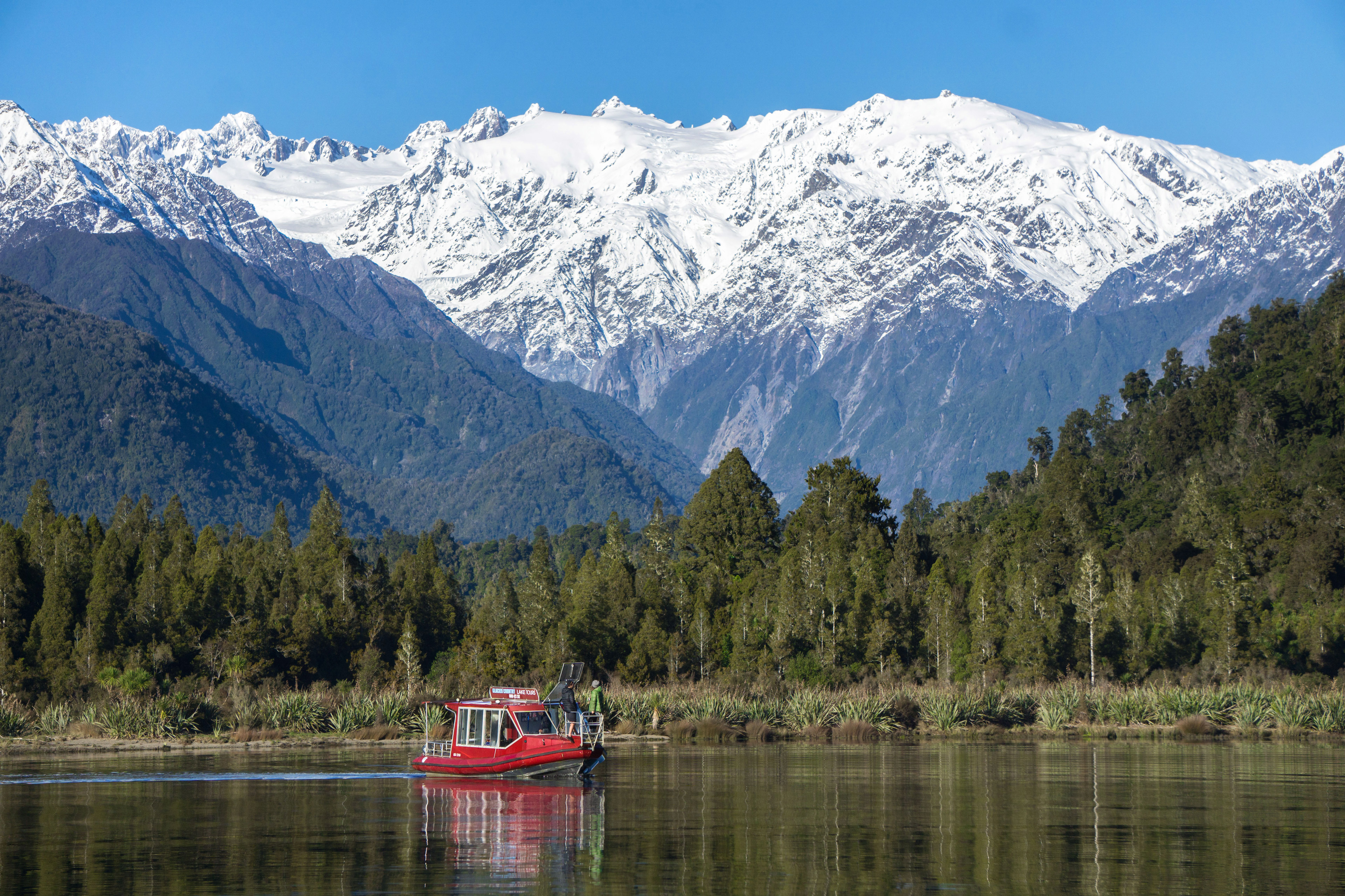 HINWEIS: Seit Oktober 2025 wird der bis dahin angebotene Helikopterflug auf den Gletscher wegen häufiger Ausfälle durch widriges Wetter ersetzt durch eine geführte Bootskreuzfahrt und Wanderung im Franz Josef Gebiet, über den Lake Mapourika, mit Spaziergang durch einen privaten geschützten Regenwald, und auch mit fantastischen Ausblicken auf die Gletscherwelt. Optional gibt es diese Möglichkeit aber weiterhin, sofern das Wetter mitspielt. Unsere Reiseleiter helfen Ihnen auf Wunsch vor Ort gerne weiter.