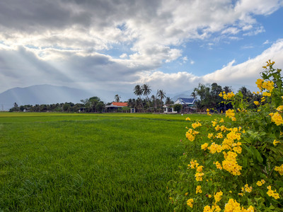 Unser Hotel liegt am Rande von Nha Trang. Doch wir begeben uns heute Nachmittag nicht in die Stadt hinein, sondern hinaus aufs Land. Hier werden wir einige Stunden unterwegs sein, in einer Landschaft mit vielen Reisfeldern, Streusiedlungen und Bergen am Horizont. Immer wieder nett sind auch die Begegnungen mit den Menschen in diesen Dörfern.